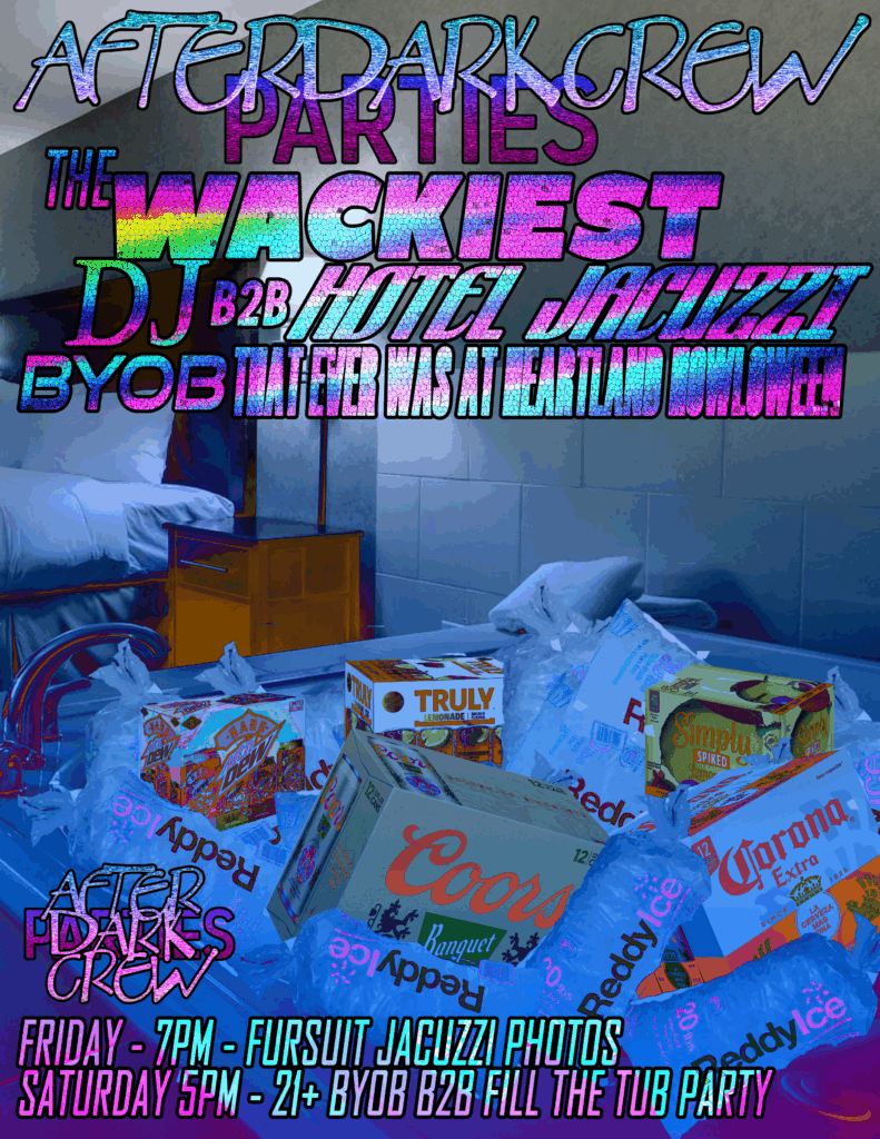 A photo op party in the suite’s jacuzzi. Bring your fursuit and grab the provided fruit tray for some hilarious photos.